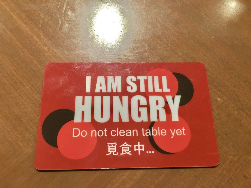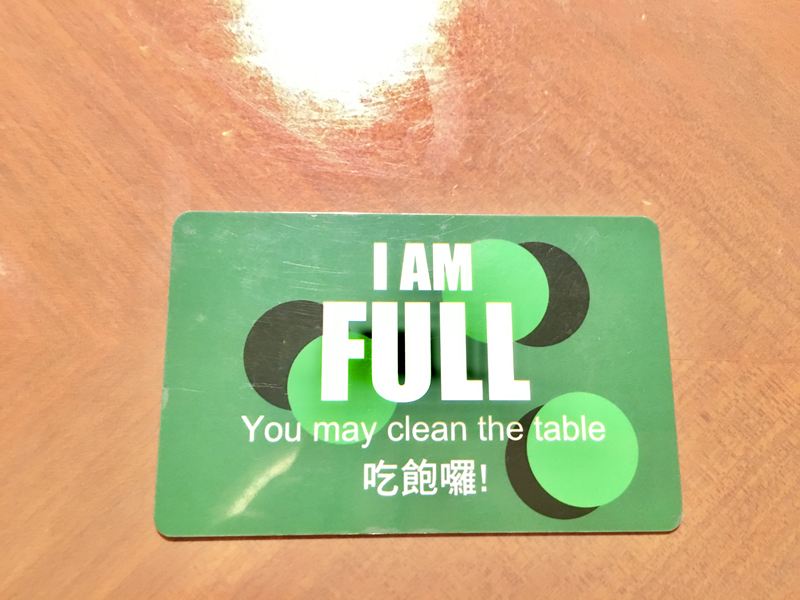 反之用餐完畢把卡片翻過來,綠色這面代表已經吃飽了