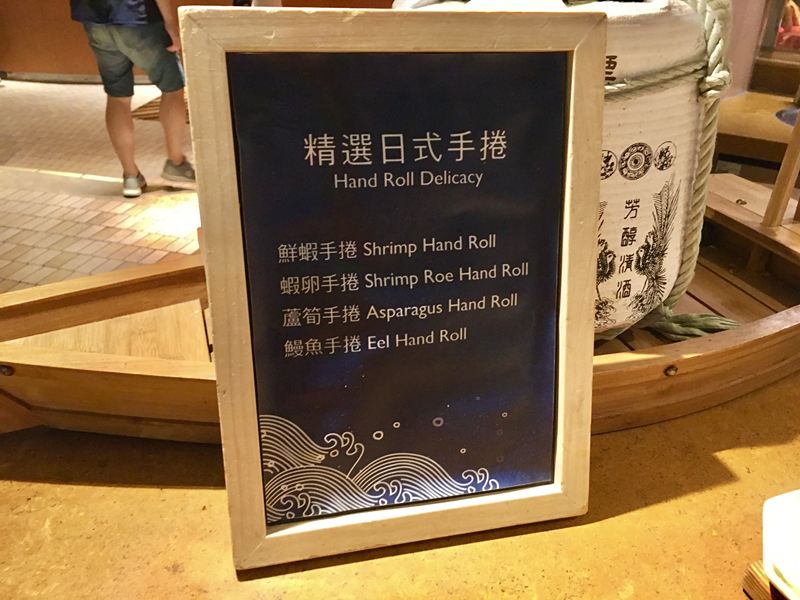 鮮蝦手捲、蝦卵手卷、蘆筍手捲、鰻魚手捲