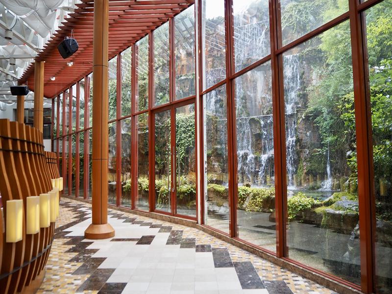 說到阿里山賓館的麗景廳,相信大家多少在IG上有看過這一個美麗的餐廳,挑高的玻璃帷幕,加上一旁落地窗外的瀑布景色,這裡算是一個必拍照的打卡景點