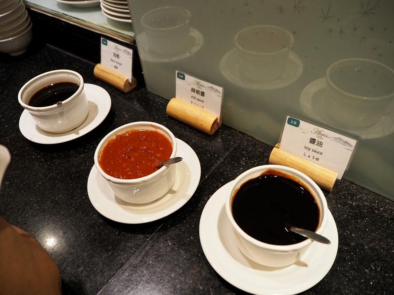 現煮擔仔麵三種醬料可自行添加:醬油、辣椒醬、烏醋