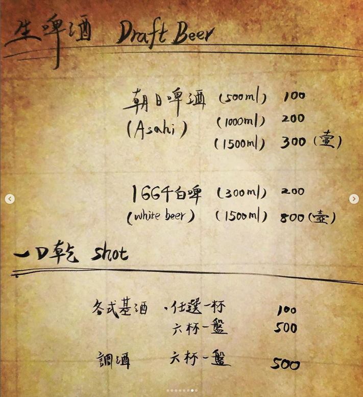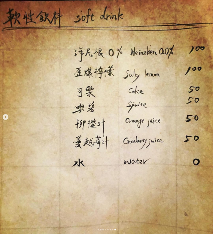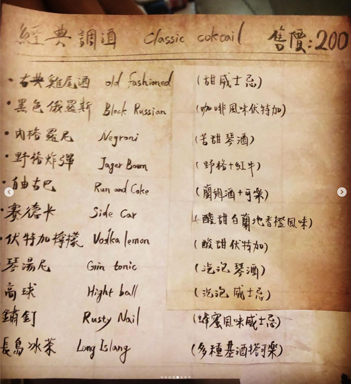 離岸流的菜單都在他們的IG上,現場沒有菜單可看,點酒方式是自己上IG決定要什麼,在到吧檯點
