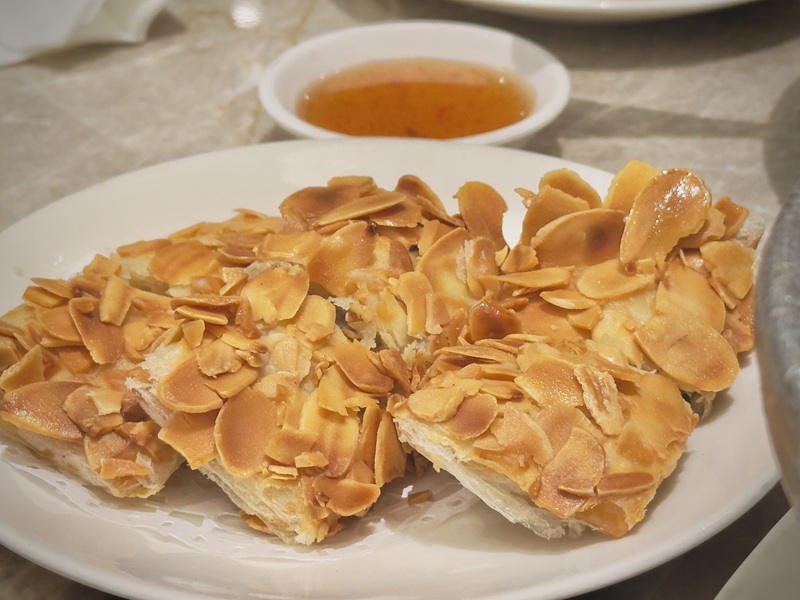 香酥的杏仁脆片包裹著金黃的外皮,內餡更是讓人驚喜,結合了猴頭菇、山藥與芋泥,口感豐富又層次分明