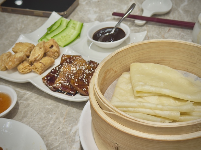 搭配手工製作的荷葉餅、酥脆的腐衣炸響鈴以及特調的甜麵醬
