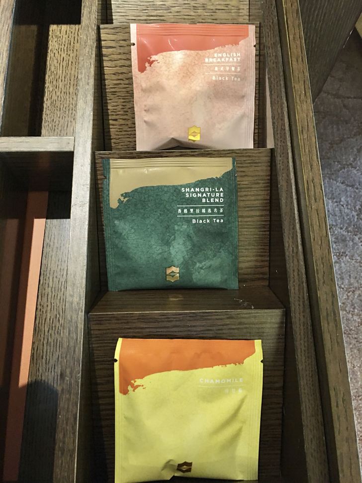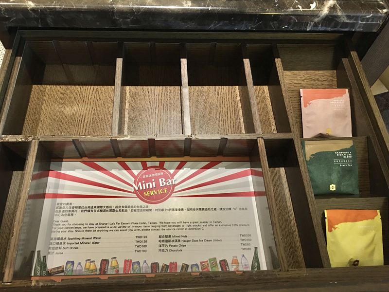 櫃子第一層抽屜裡有茶包與付費飲料菜單