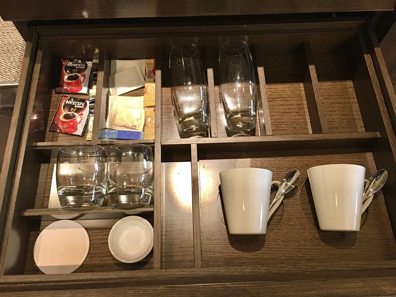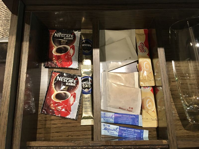 第二層抽屜有茶杯具與咖啡奶茶沖泡飲料