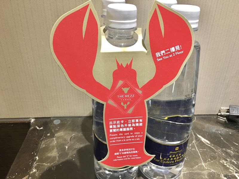 瓶裝水上面有一張龍蝦形狀的優惠卷