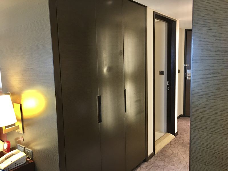 茶具飲料的對面是衣櫃,內有寢具用品