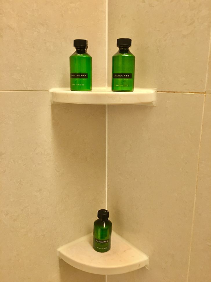 乾濕分離的淋浴間裡面有洗髮精、潤髮乳、沐浴乳