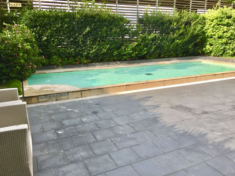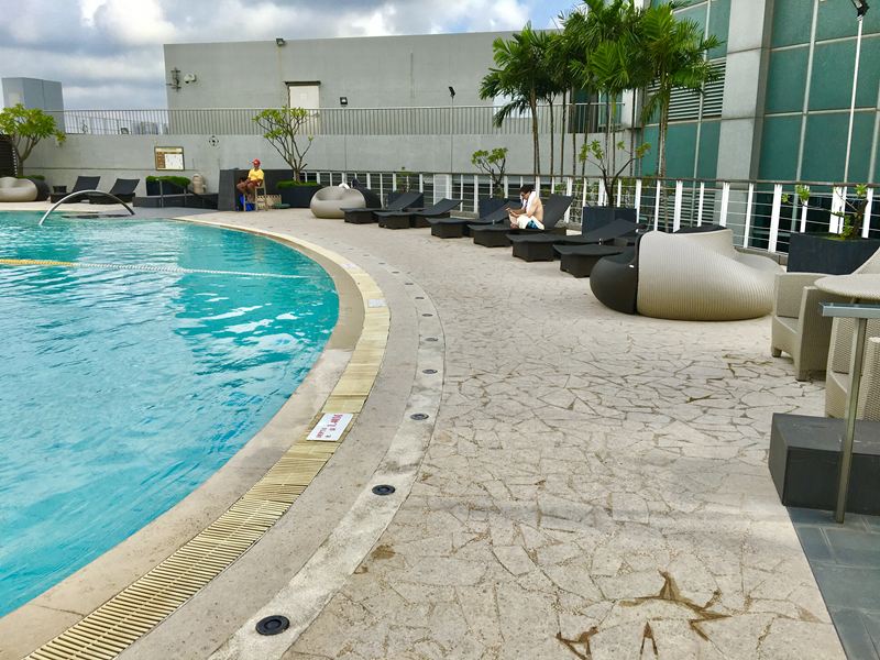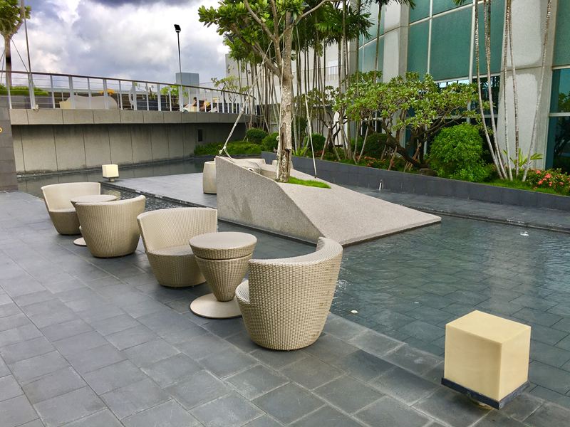 接著來看看戶外游泳池,一出來戶外先看到一個小池畔