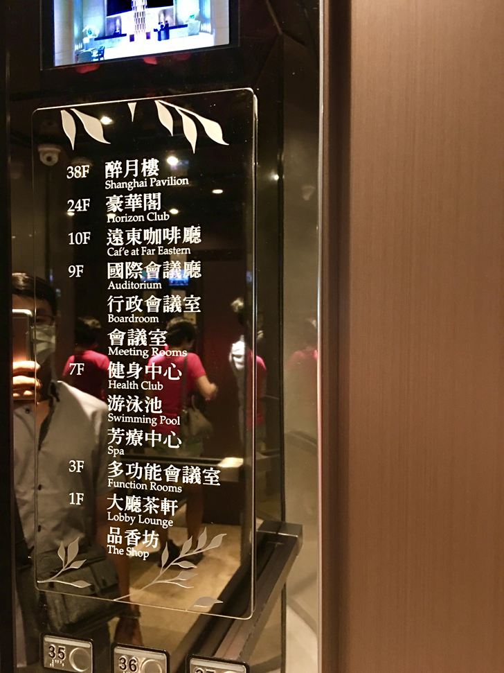 電梯內有飯店內各樓層的簡介表