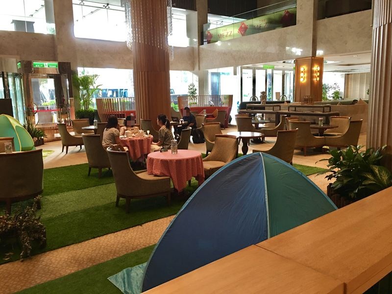 飯店中間的大廳茶軒有許多的小帳篷,可以給帶小孩的父母來到這裡