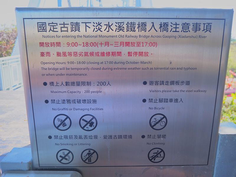 這座舊鐵橋天空步道的開放時間隨著月份會有些微的不同,來的時候要注意一下他的時間