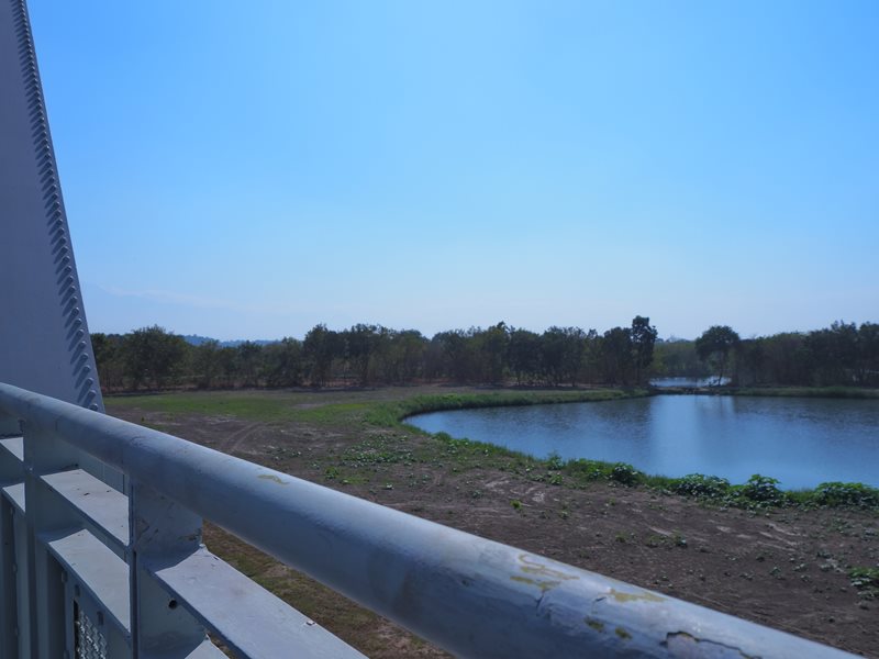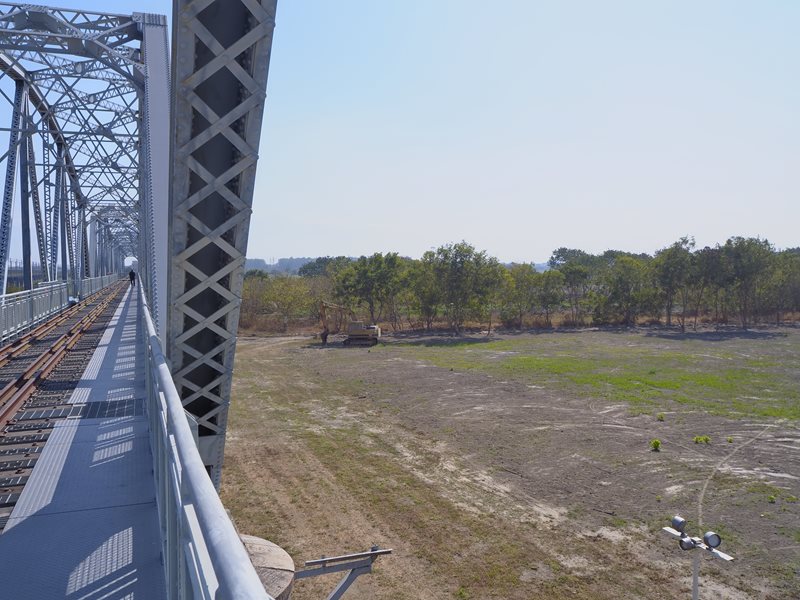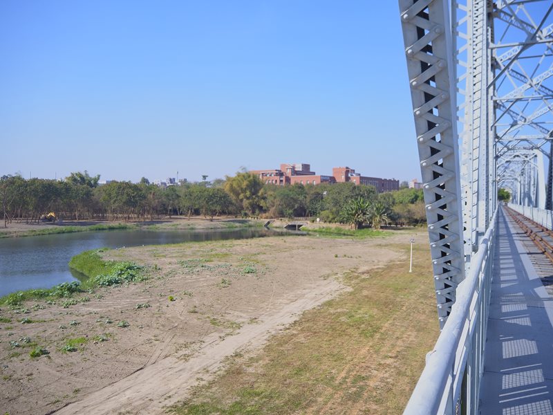 鐵橋上面的風景滿不錯的,望眼看過去鐵橋+鐵軌一直往前無限延伸過去的壓縮感,左邊的新橋不時會有火車還飛馳而過,抓準時間還可以跟火車來個合照,右邊可以看到一個很像溼地的生態環境視野滿好的