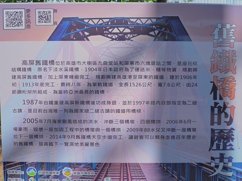 早期是連接高雄以及屏東的運輸道路,在日本時期是用來運送米、糖等等的物資,當時是一位日本工程師:飯田豐二所建造的,全長有1526公尺,是亞洲當時最長的鐵橋