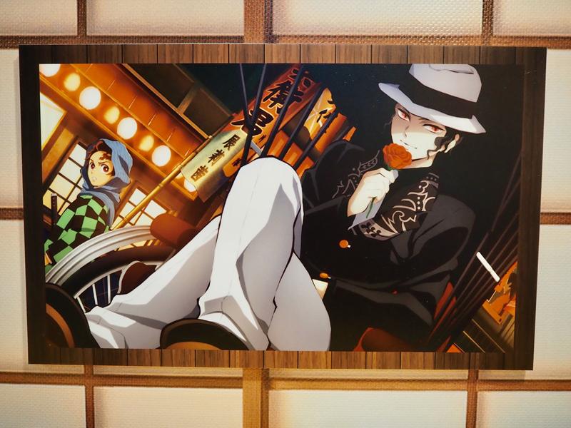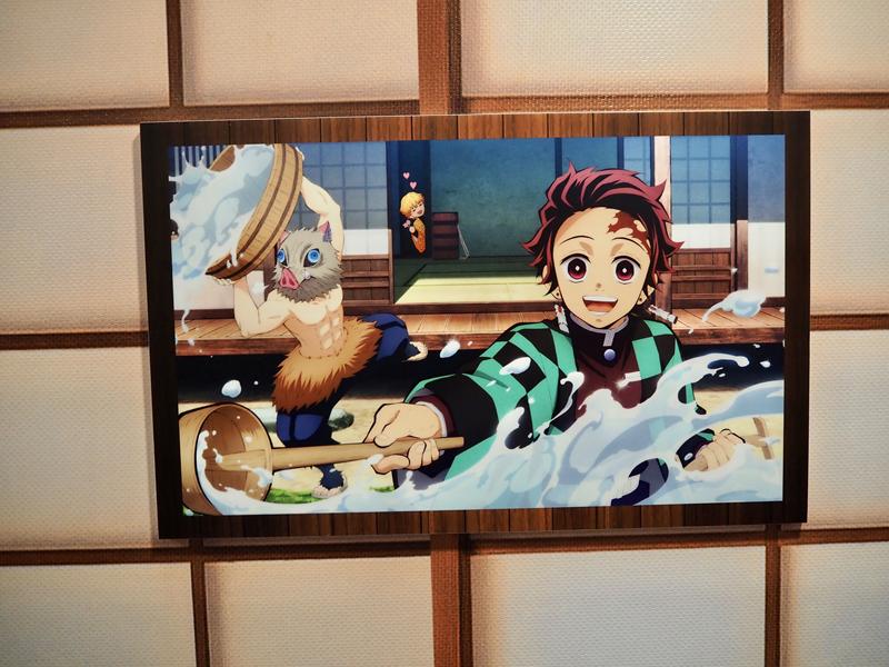 整個展區內日式百葉門搭配白色燈籠濃濃的日本風格,還有故事中主要的四大角色:炭治郎、禰豆子、善逸、伊之助,以及帥氣的九柱們都在這裡等著你來合照,會場內的牆上還可以看到動漫當中的經典場景以及角色的各種日常生活圖片