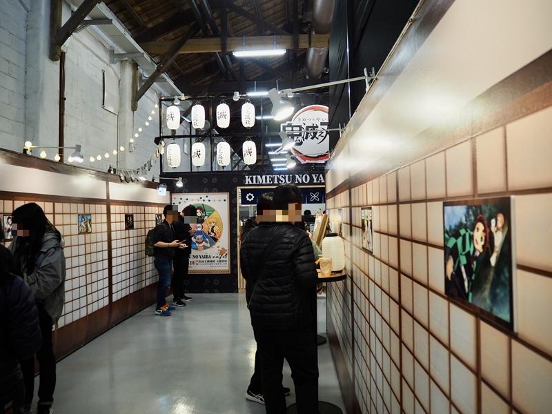 參觀完各大角色的隧道牆後,這間外帶快閃店販售著許多關於鬼滅之刃主題美食:鬼殺隊特製飯糰定食、禰豆子木箱蛋糕、角色氣泡飲及鎹鴉造型冰淇淋,都是當天的人氣美食,點好餐點後就可以直接在一旁的日式屋台造型櫃檯用餐