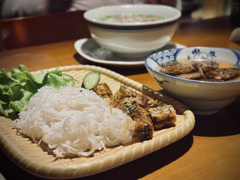 這道河內烤肉麵真的是非常特別的一道料理!不僅可以品嚐到河粉、生菜、烤肉、熱湯,還有春捲,多樣的組合讓人覺得超值又滿足