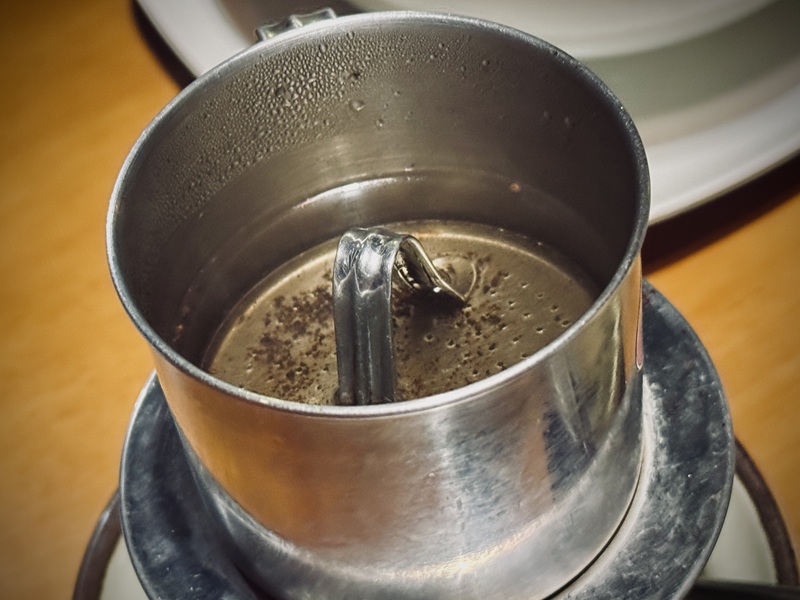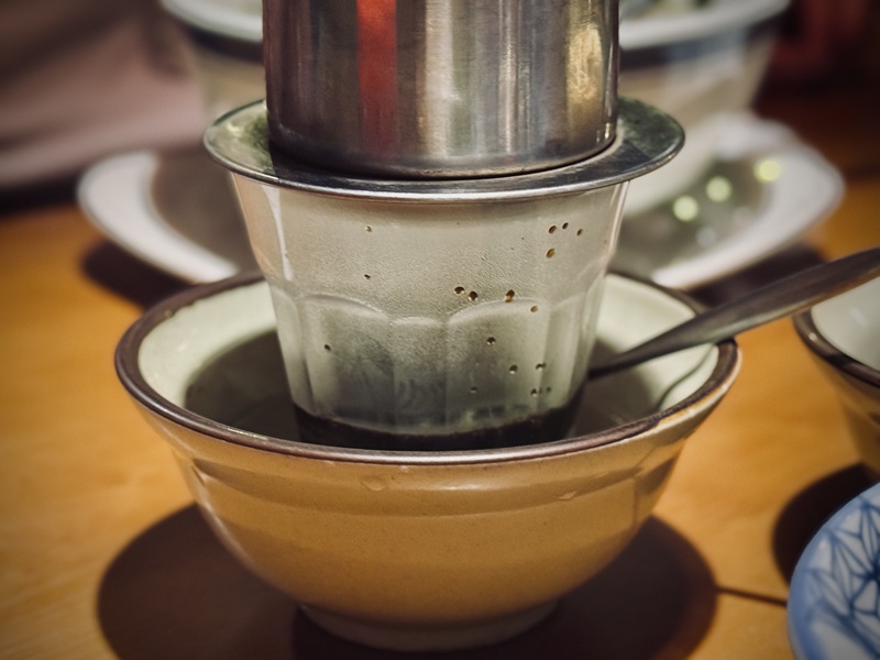 咖啡會慢慢地一滴一滴往下滴,過程中可以先放著讓它慢慢滴完,等吃飽之後剛好可以享用一杯香濃的越南咖啡