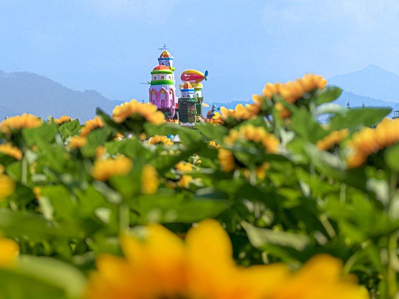 向日葵花海往主毯區看過去的飄浮花都,有沒有像天空之城的感覺