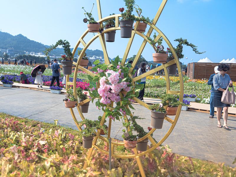 雖說展區中的裝置藝術是這裡的主題,但這裡的花海也是一大重點,在展區中可以看到許多不同品種的花朵,來到這裡可別只顧著跟展覽品拍照,周邊的百花爭艷的花朵也是不能錯過的景色