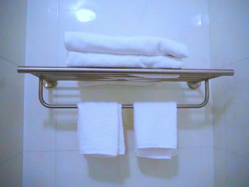 馬桶也整理得相當乾淨,上方有毛巾浴巾