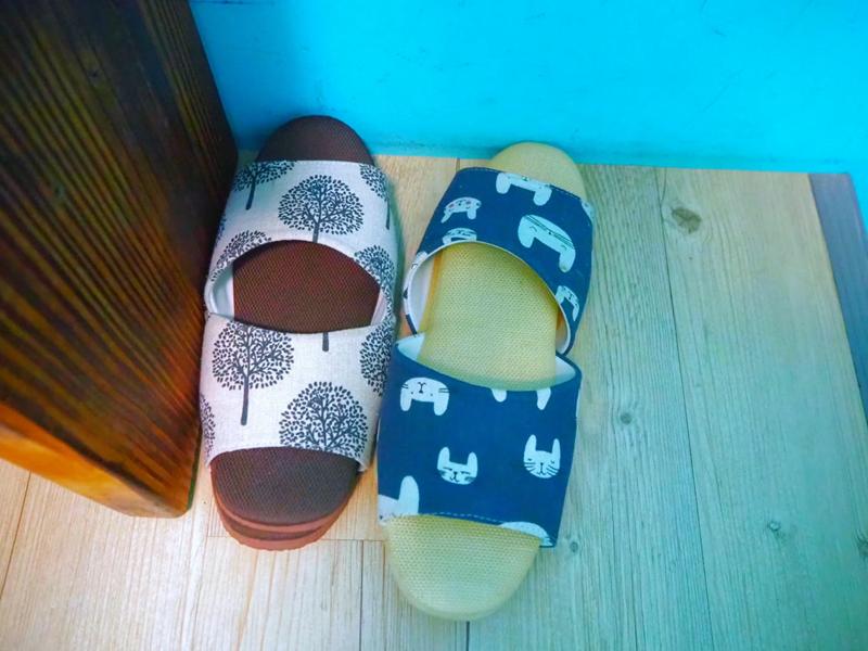 滿喜歡這種木質感的桌椅家具,一旁有附上室內拖鞋,也是相當居家的室內拖鞋,穿起來很舒適(更有家的感覺了) XD
