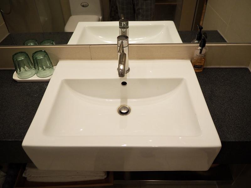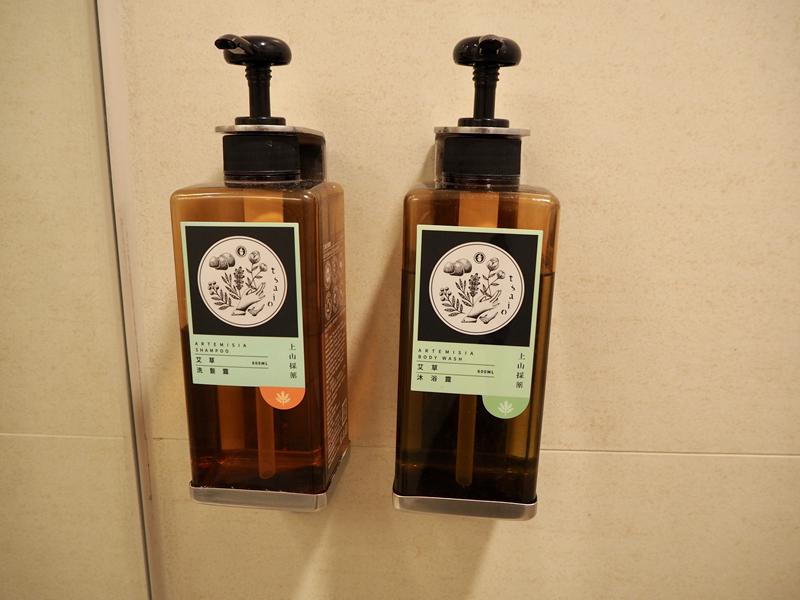 淋浴間裡也附上洗髮精跟沐浴乳,使用的是上山採藥的品牌,其實也有浴缸的房型,但隔天一大早就要退房了,今天主要只是來睡覺,所以就沒有預定太好的房型