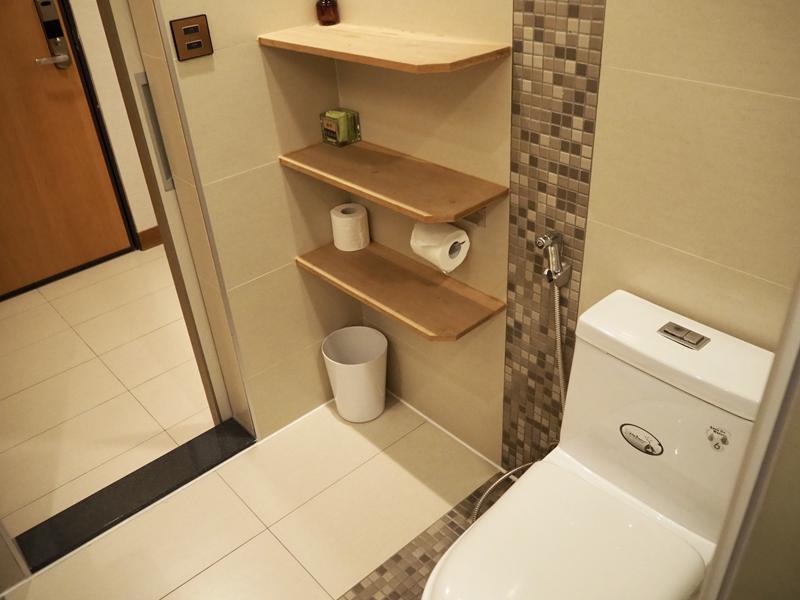 接下來看看也是很多人住宿會在意的衛浴空間,浴室也是簡潔有力,但該有的掛勾、乾濕分離、置物架還是一樣都有