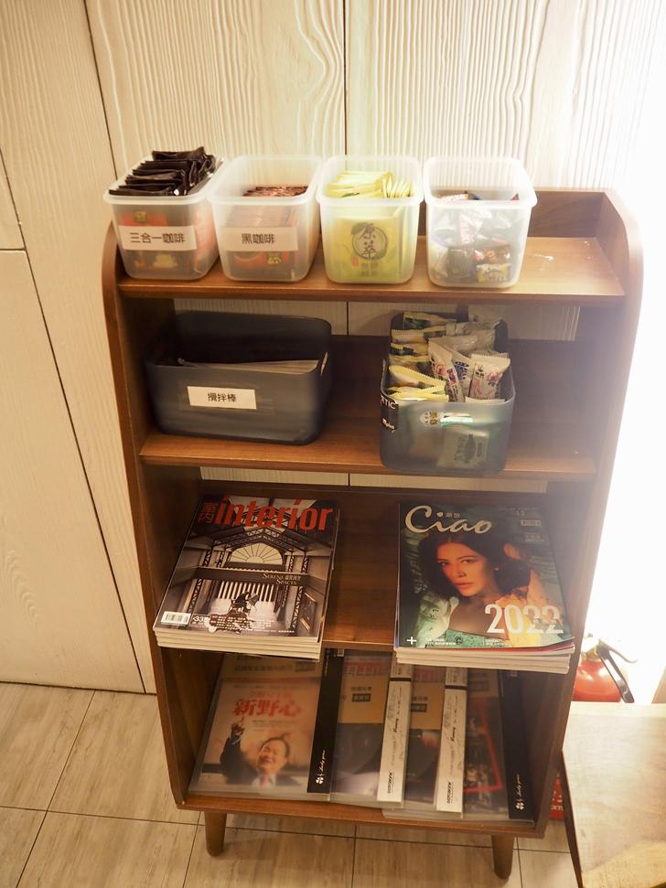 大廳裡的咖啡、茶包、餅乾都可以隨意取用,礦泉水喝完了也可以隨時到這裡跟服務人員拿取