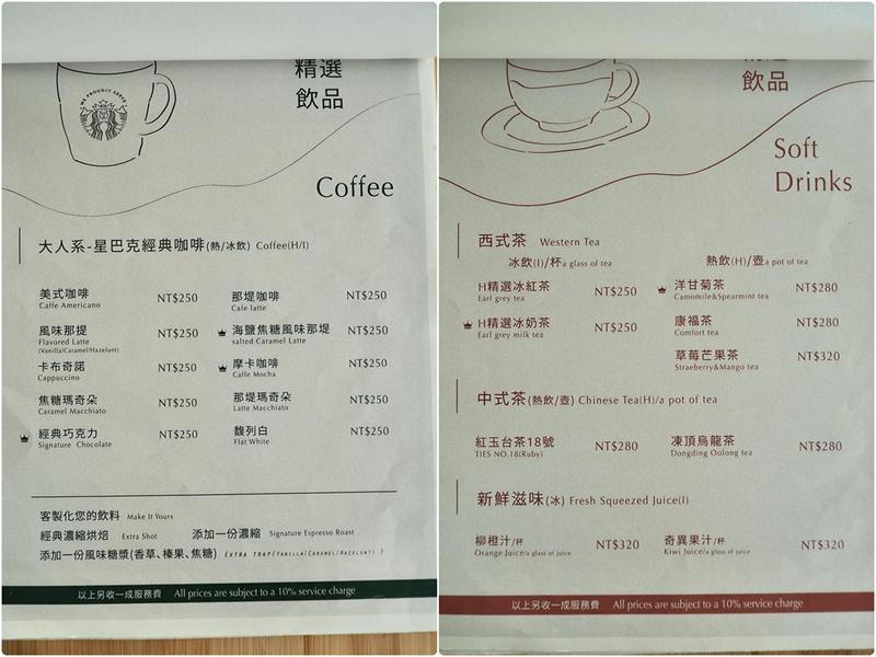 下午茶的菜單有提供:鹹食、甜點、咖啡、回沖壺茶飲、微醺調酒等等的餐點,除此之外還有雙人下午茶套餐,如果有選擇性障礙真的不知道要點什麼建議可以點雙人套餐,內容有12個甜鹹精緻小點+新鮮水果,以及任選兩杯飲品