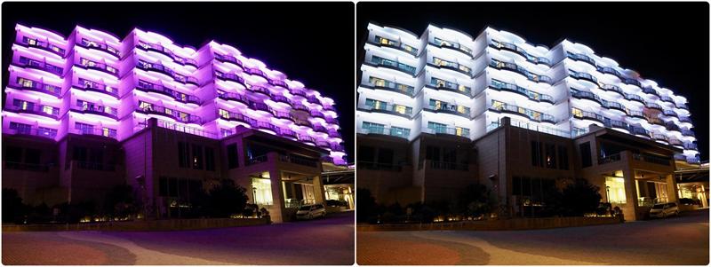 夜晚除了飯店2F的原點咖啡廳有活動以外,飯店的戶外景觀平台每到晚上有LED聲光秀可以欣賞,每天有兩場每場10分鐘,播放音樂搭配跳動的LED燈光絢麗又夢幻