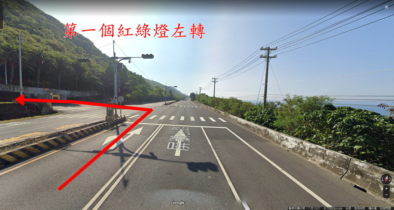 第一個紅綠燈路口左轉進入飯店