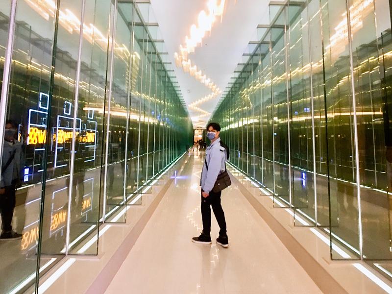 H會館內不能錯過的地方就是飯店的2F,有佈置一片鞦韆蕨美牆,還有必拍的空中廊道