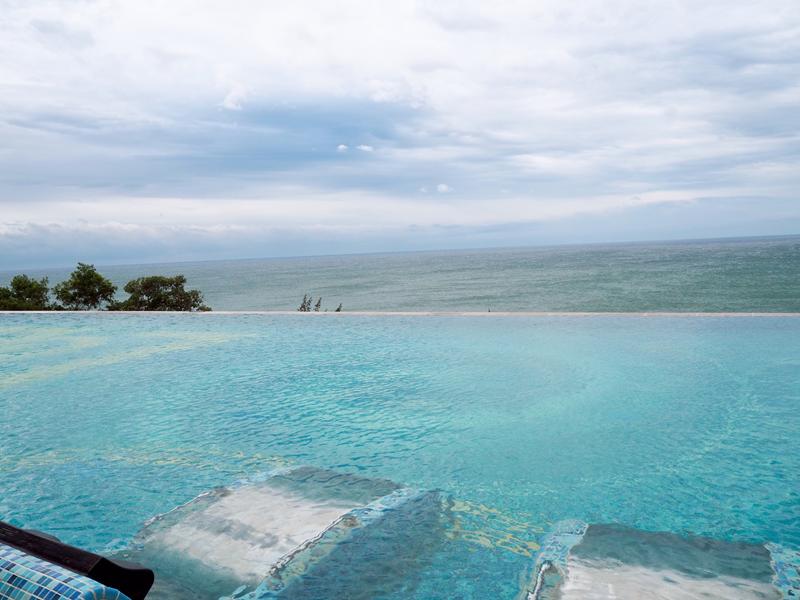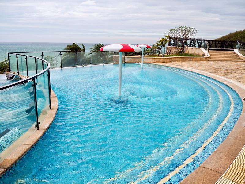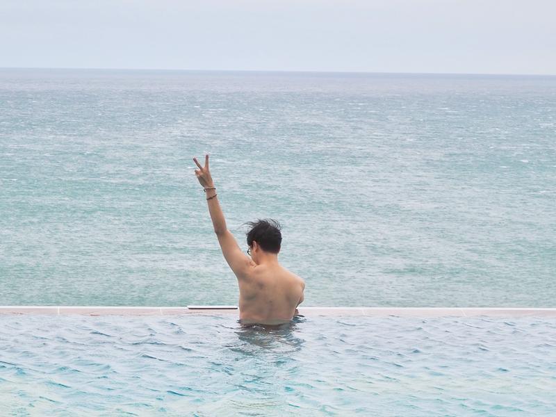 說到H會館除了必拍的空中廊道,另外一個熱門且大家熟知的打卡地點就是這一個無邊際泳池,泳池邊緣連接著海平線的感覺,一望無際美麗又好拍,許多人都會來這裡留下美麗的照片,泳池其實不大但相當美麗,有分成人池以及兒童池,一旁還有SPA躺椅可以讓你懶洋洋的躺在這裡欣賞美麗的海景