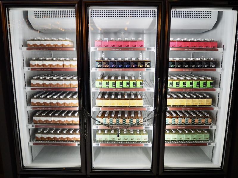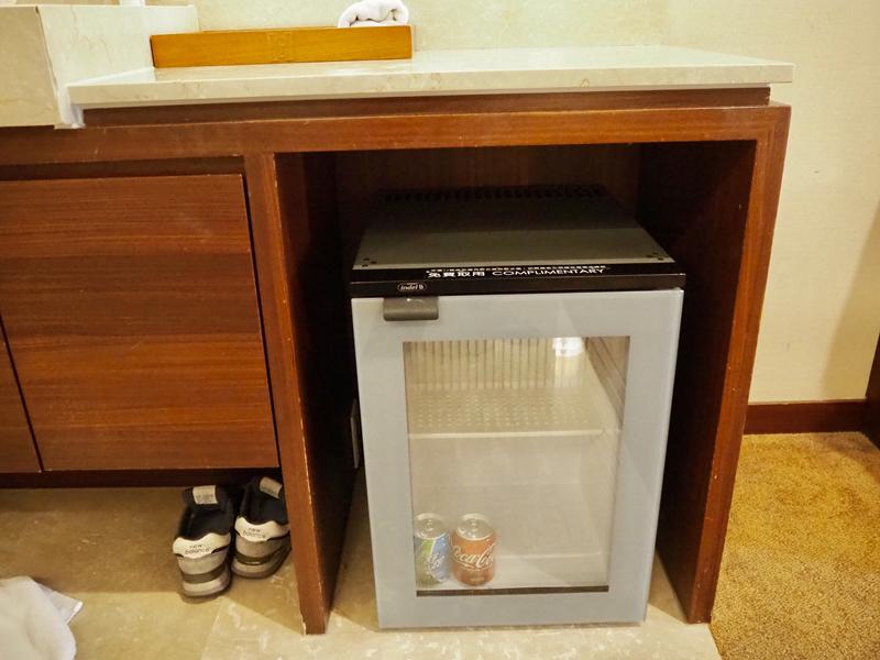 接近舞台的座位很有夜店的fu,一旁的冰櫃內有各式的雞尾酒,但在這個時間好像沒有提供的樣子,冰箱門用鐵鍊鎖起來,想喝的話飯店的精品店內有在販售