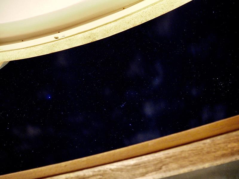 在飯店渡過充實的一天後,回到房裡可別急著躺平,來到陽台抬頭看看天空你會發現滿天繁星就在你的眼前,彷彿一伸手就可以抓到,這大概是流浪魚目前看過最多星星的地方,除此之外UFO Lounge咖啡廳的燈光也會七彩變化