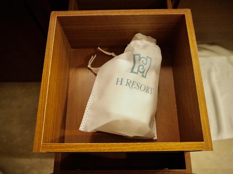H會館準備的室內拖可不是一般飯店常用的紙拖鞋而是夾腳拖鞋,在住宿期間可以穿著這雙拖鞋在飯店趴趴走,其實這樣的設計也是方便貴賓們去無邊際泳池不必在特地帶拖鞋,重點是還可以帶回家作紀念唷!~