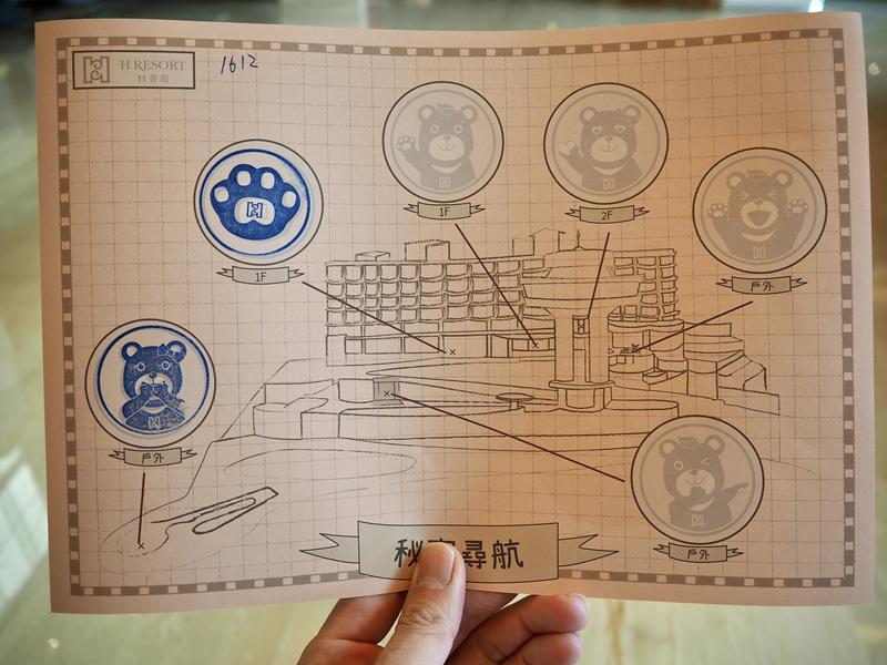 飯店有一個戶外區域已經改建,所以那個區域就直接幫你蓋上章,另一個在飯店大廳的造景經過很難不注意到,所以基本上有兩個保底印章,其他四個就分別在飯店的各個角落,在這裡就不透漏了,給去的人自己找比較有趣,其實飯店人員也很熱心,看你拿著藏寶圖也都會跟你提示在哪個方向