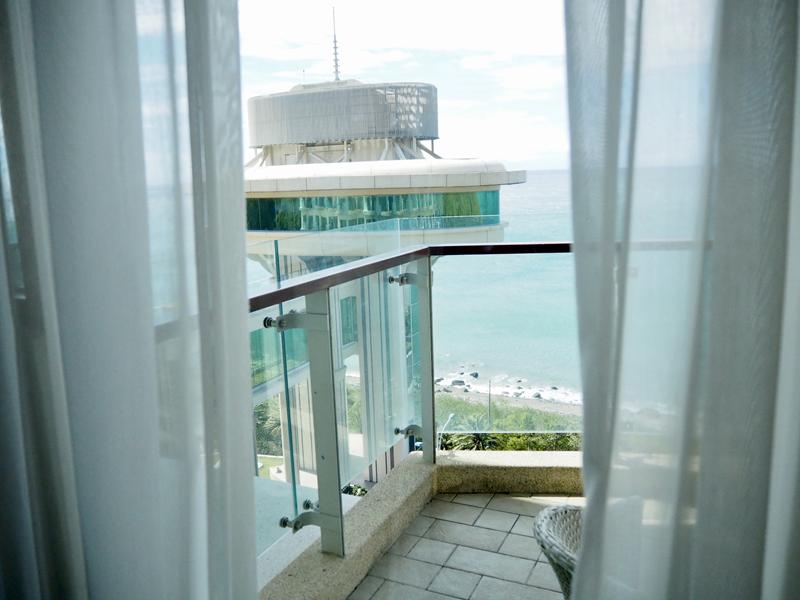 接著就是最令人期待的陽台,打開窗簾陽光瞬間灑進房內整個超夢幻,加上眼前這一片無敵海景,一想到要在這裡住兩天就心情超好 XD