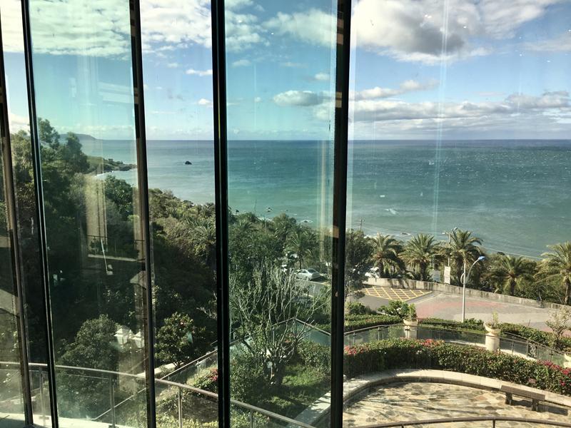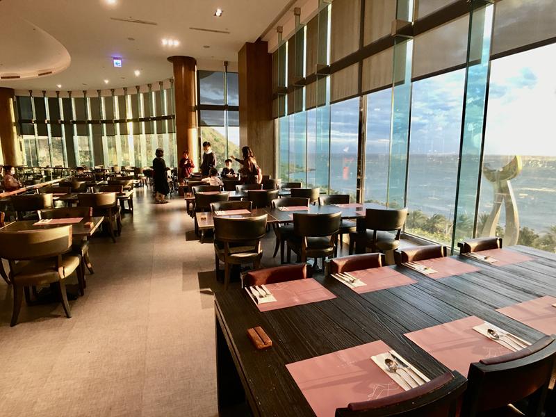 本來想吃的海之悅鐵板燒因為疫情關係暫停營業,所以也只好換吃H餐廳,不然這裡要開車出去用餐到墾丁大街也至少約30分鐘的車程,一進到餐廳內就被窗邊的美麗海景給吸引,在這樣一望無際的海平線下用餐也是相當特別的體驗,靠窗的位子大多都是4人座,2人用餐想要坐窗邊基本上有點困難,也有少數2人座的靠窗位子,跟4人座以上的位子比較起來風景就較差些,這次住宿早晚餐都沒有被安排到靠窗的位子(((遺憾… XD