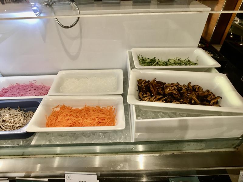 H餐廳的餐點與座位區規劃的很簡單明瞭,大範圍是座位區,取餐區全部集中在一區,取餐大至上分成4區,中間大區提供熱炒熟食、日式壽司手捲、海鮮生魚片、爐烤牛排、現煮牛肉湯