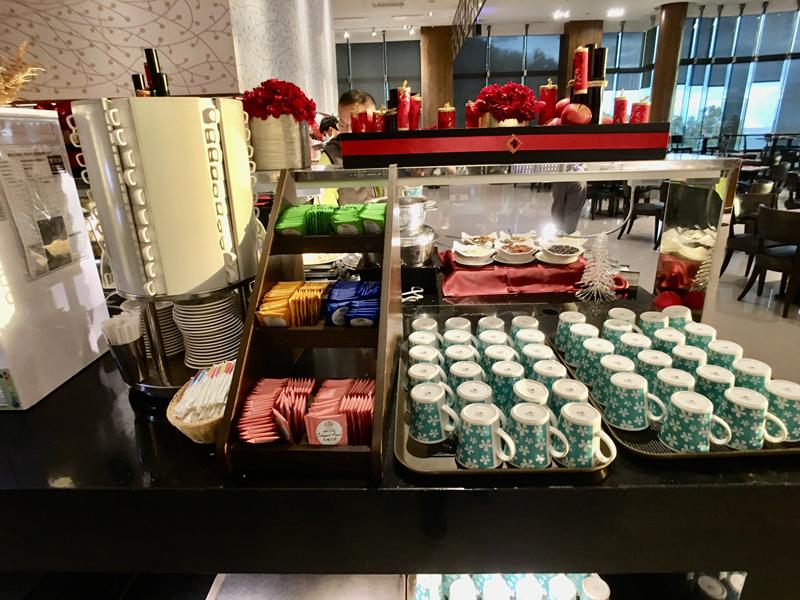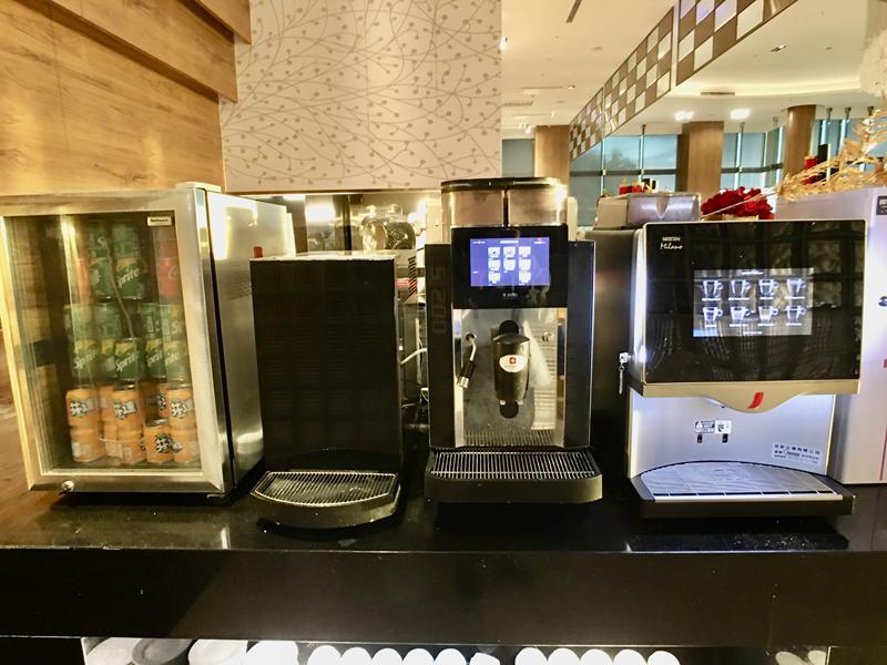 靠進入口這一個取餐區有:汽水、咖啡、茶包的飲品