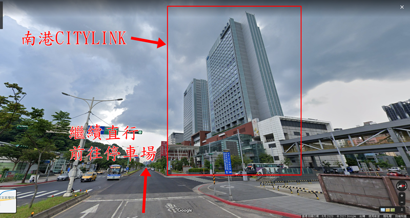 如走忠孝東路七段過來可以看到南港CITYLINK在右手邊,但不要右轉進去繼續直行前往停車場