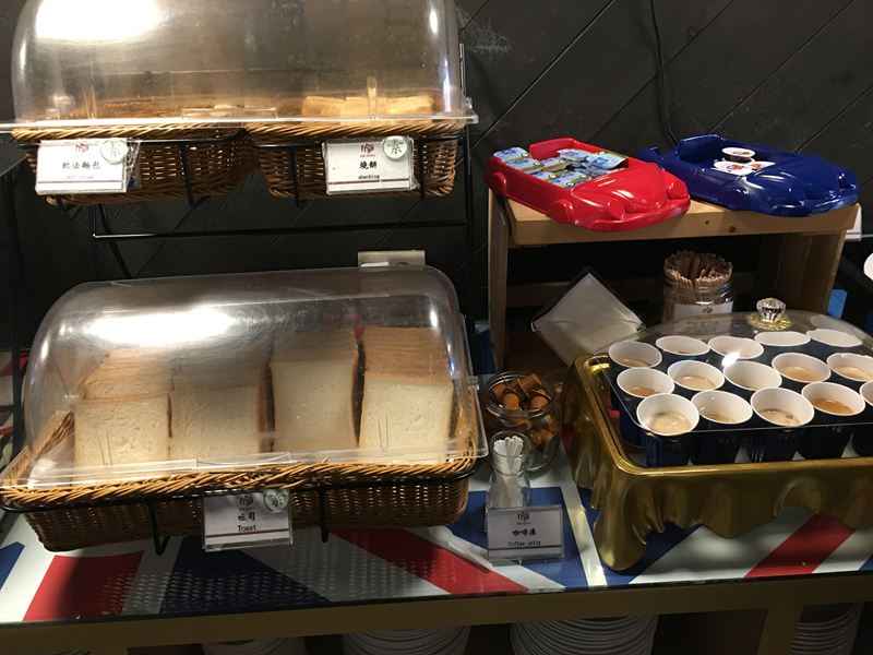 西式餐點區:吐司、軟法麵包、果醬、燒餅、咖啡凍、生菜沙拉