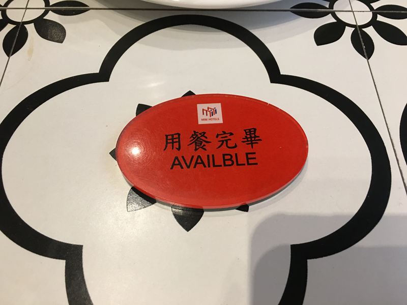 毎一桌都有一個牌子,翻到用餐中就可以離開坐位