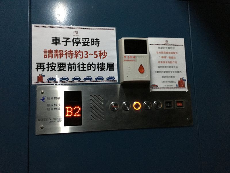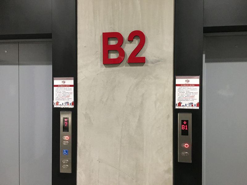 按下B2電梯(不需要下車,降下車窗就可以按到)