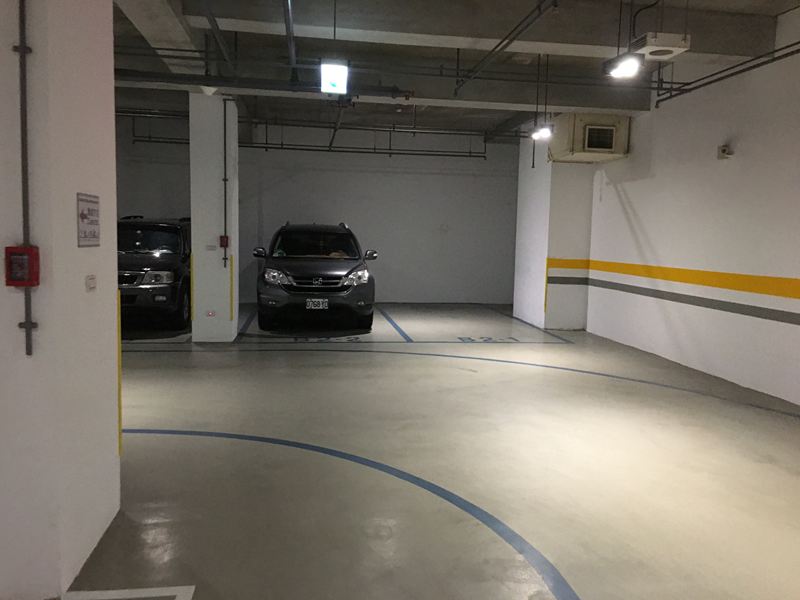 車庫不大但有分平面停車位跟機器式停車位,基本上來說幾乎都有位子可以停