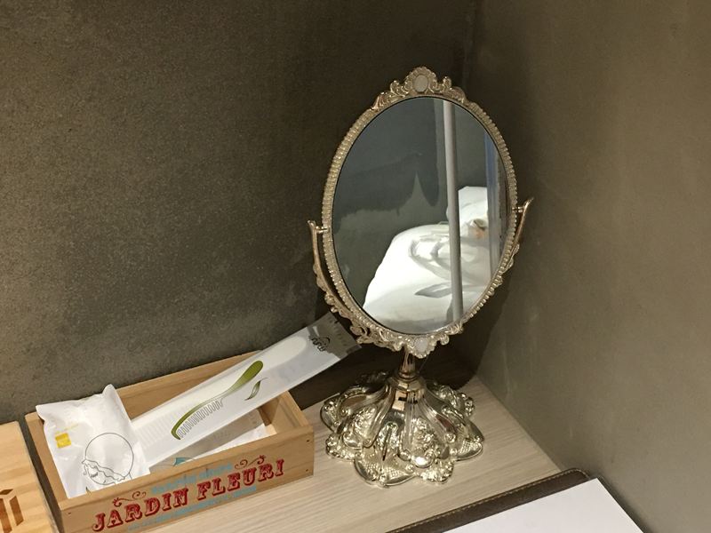 這一個房型除了浴室跟桌上這一個小化妝鏡以外,房內沒有其他的鏡子