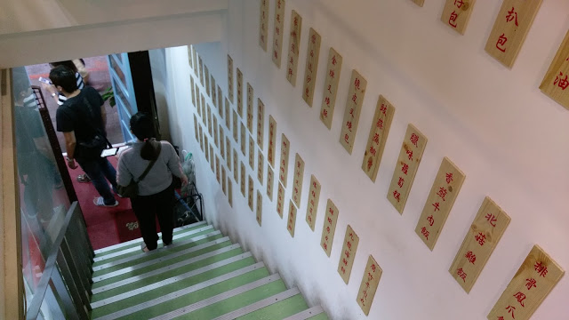 樓梯牆上貼滿了店內各式各樣的餐點商品 (不用在這裡看要吃什麼,到了2F入座後會有人給你菜單) 可以坐著慢慢看 不用傻傻的在這裡看要點什麼 0.0″