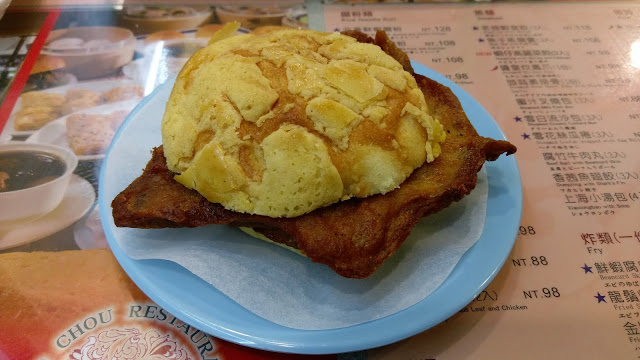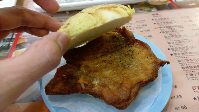 菠蘿麵包+炸豬排+胡椒粉(原本應該是加美奶滋)